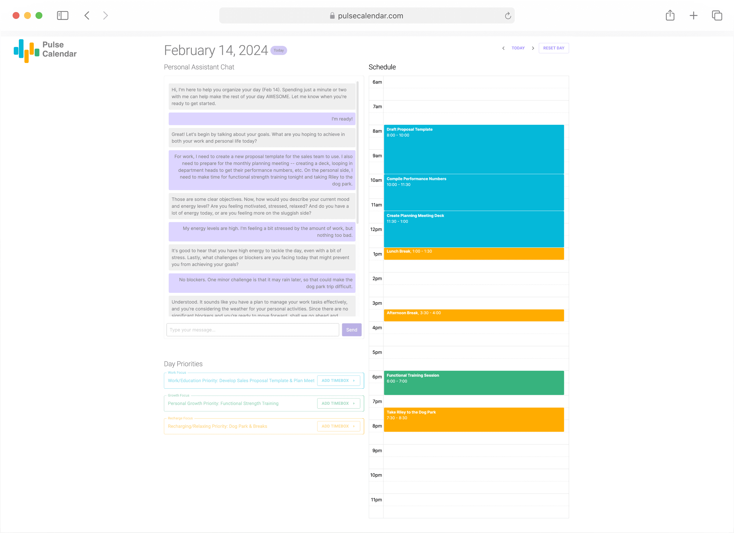 How much time do you spend asking "What should I do next?" or "Am I doing the right thing?" Pulse Calendar takes care of this for you, so you can focus on the task at hand.